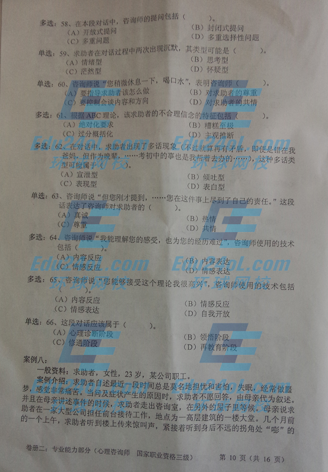 2014年11月三級(jí)心理咨詢師考試專業(yè)技能真題