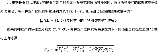 2.如果組合資產(chǎn)中各資產(chǎn)存在相關(guān)性,則風(fēng)險(xiǎn)分散的效果會(huì)隨各資產(chǎn)間相關(guān)系數(shù)有所不同: