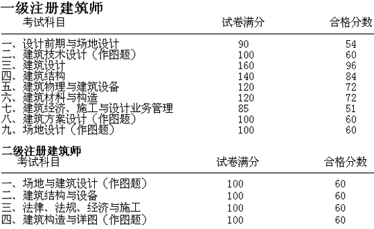 2008年全國(guó)一、二級(jí)注冊(cè)建筑師考試合格標(biāo)準(zhǔn)如下: