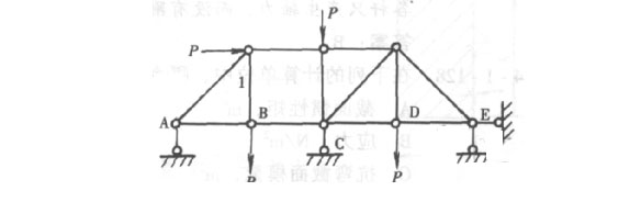 提示:根據(jù)零桿判別法,按照1、2、3、4、5、6桿的分析次序,可判斷出這6根桿均為零桿。