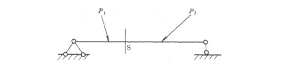 17. 圖示為一靜定梁,作用P1、P2二力,則截面S處的彎矩的物理意義是( )。
