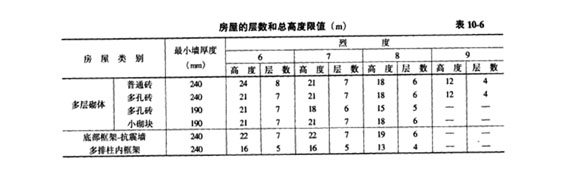 1.多層砌體房屋的高度和層數(shù)應(yīng)按表10-6(《建筑抗震設(shè)計規(guī)范》(GB50011一2001), (以下簡稱《抗規(guī)》)表7.1.2的規(guī)定采用。
