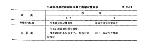 12.小砌塊房屋的現(xiàn)澆鋼筋混凝土圈梁應(yīng)按表10-13(《抗規(guī)》表7.4.4)的要求設(shè)置,