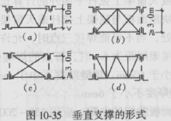 (2)屋架和天窗架的垂直支撐,可參考圖10-35(a)-(d)的形式選用;其中,圖10―35(c)一般用于天窗架兩側(cè)的垂直支撐,圖10-35(d)為兼作檁條的垂直支撐。