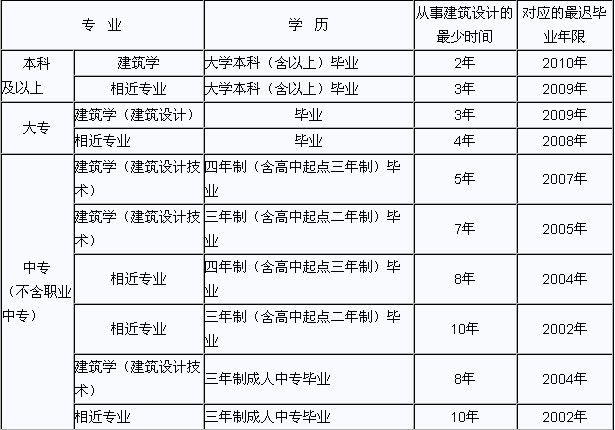 (二)二級(jí)注冊(cè)建筑師資格考試首次報(bào)考人員需滿足下列條件之一: