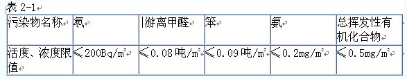 住宅室內(nèi)空氣污染物的活度和濃度應符合表2-1的規(guī)定。