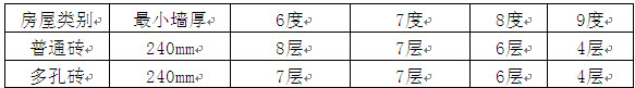 普通磚、多孔磚和小砌塊砌體承重房屋的層高不應(yīng)超過3.6m;底部框架-抗震墻房屋的底部和內(nèi)框架房屋的層高不應(yīng)超過4.5m。