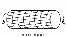 當(dāng)桿件受一對(duì)轉(zhuǎn)向相反,作用在垂直于桿軸線的兩個(gè)平面內(nèi)的外力偶作用時(shí),桿件將發(fā)生扭轉(zhuǎn)變形(圖 3 一12 )。