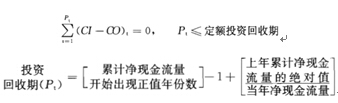 投資回收期亦稱投資返本期,是指項(xiàng)目投產(chǎn)后用所獲得的凈收益償還項(xiàng)目全部投資(包括固定資產(chǎn)投資和流動(dòng)資金)所需要的時(shí)間。它是反映項(xiàng)目財(cái)務(wù)上投資回收能力的重要指標(biāo)。投資回收期通常以年來(lái)表示,一般是從項(xiàng)目建設(shè)開始年份算起,也可以從投產(chǎn)開始年份算起,但應(yīng)予以注明。計(jì)算公式如下: