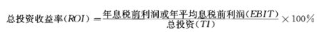 總投資收益率一般是指項目在計算期內(nèi)達(dá)到設(shè)計生產(chǎn)能力后的正常生產(chǎn)年份的年息稅前利潤(EBIT)與項目總投資(TI)的比率。對生產(chǎn)期內(nèi)各年的利潤總額變化幅度較大的項目,應(yīng)計算生產(chǎn)期年平均息稅前利潤與項目總投資的比率。它是考察單位投資盈利能力的靜態(tài)指標(biāo),表示總投資的盈利水平。可根據(jù)“利潤與利潤分配表”按下式計算: