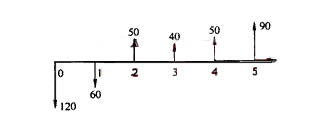 21.在下面的現(xiàn)金流量圖中,若橫軸的時間單位為年,則大小為40的現(xiàn)金流量的發(fā)生時點為( )。