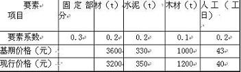 21.某工程施工合同規(guī)定用調(diào)值公式法對建安工程價款進行動態(tài)結(jié)算,某分部工程預(yù)算進度款為300萬元,相關(guān)調(diào)整要素和數(shù)據(jù)如下表所示,則調(diào)值后該分部工程結(jié)算款為( )萬元。
