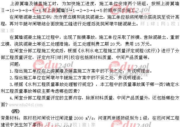2007年一級建造師考試水利水電專業(yè)試卷(4)