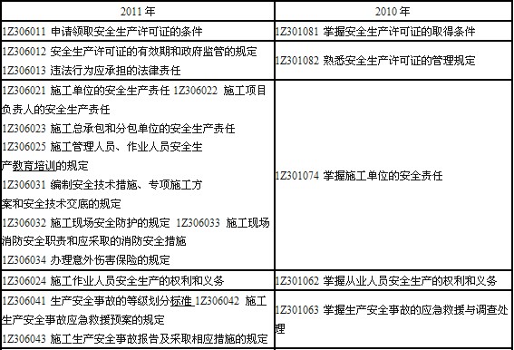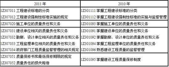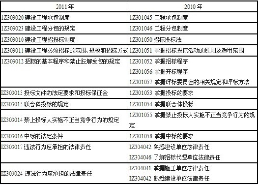 2011年一級建造師法律法規(guī)相關(guān)知識考試大綱內(nèi)容變化