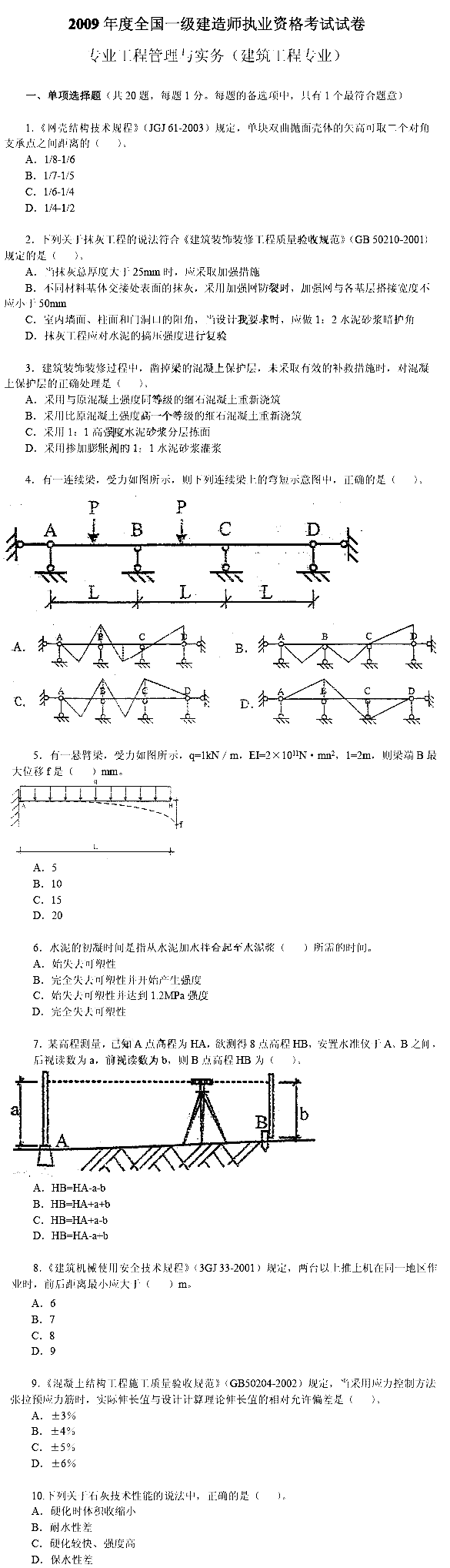 2009年一級(jí)建造師考試《建筑工程》考試真題