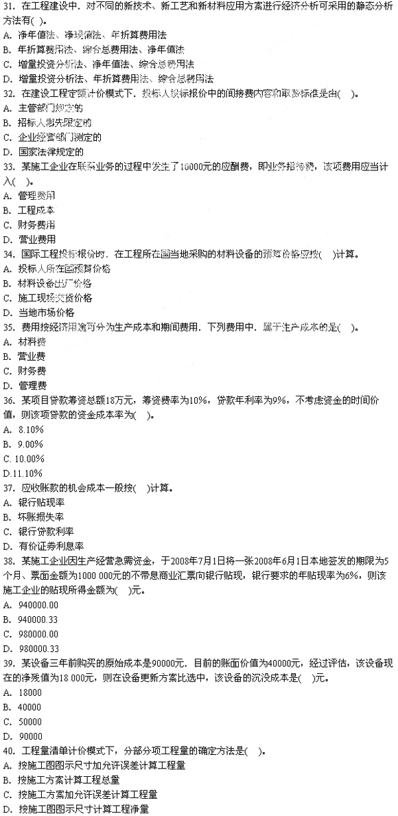 2009年一級建造師考試《建設(shè)工程經(jīng)濟(jì)》考試真題