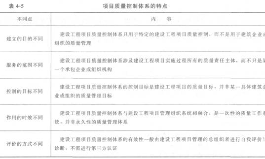 項(xiàng)目質(zhì)量控制體系的特點(diǎn)見表4-5。