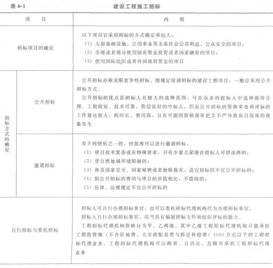 建設(shè)工程施工招標(biāo)見表6―1。