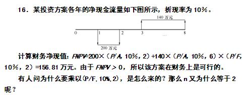 答:參見(jiàn)教材式(1Z101012-1)和式(1Z101012-3)可知,現(xiàn)值與終值的概念和計(jì)算方法正好相反。在P一定,n相同時(shí),i越高,F(xiàn)越大;在i相同時(shí),n越長(zhǎng),F(xiàn)越大。在F一定,n相同時(shí),i越高,P越?。辉趇相同時(shí),n越長(zhǎng),P越小。由此可見(jiàn),從收益方面來(lái)看,獲得的時(shí)間越早、數(shù)額越多,其現(xiàn)值也越大;從投資方面看,在投資額一定的情況下,投資支出的時(shí)間越晚、數(shù)額越少,其現(xiàn)值也越小。這表明即使資金額相同,但其投入和回收的不同,其現(xiàn)值是不同的,即價(jià)值是不同的。因此,應(yīng)合理分配建設(shè)項(xiàng)目各年投資額,在不影響項(xiàng)目正常實(shí)施的前提下,盡量減少建設(shè)初期投資額,加大建設(shè)后期投資比重;同時(shí),應(yīng)使建設(shè)項(xiàng)目早日投產(chǎn),早日達(dá)到設(shè)計(jì)生產(chǎn)能力,早獲收益,多獲收益,才能達(dá)到最佳經(jīng)濟(jì)效益。