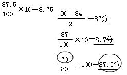 缺項(xiàng)的分表分=[70/(100-20)]×100=8.75分。