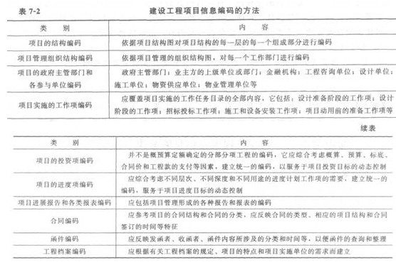建設(shè)工程項目信息編碼的方法見表7―2。