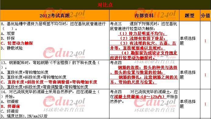 環(huán)球網(wǎng)校2012一建《建筑工程》真題及內(nèi)部資料對(duì)比