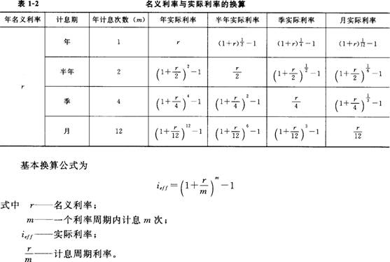 名義利率與實(shí)際利率的換算見(jiàn)表1-2。