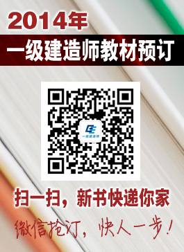 2014年一級建造師考試教材出版社為中國建筑工業(yè)出版社,掃描環(huán)球網(wǎng)校一建官方微信二維碼,立即預(yù)訂2014年新版教材。