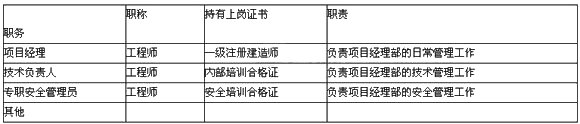 架成端等工作量,工程采用包工不包料的形式承包。項目經(jīng)理部的人員構(gòu)成情況如下表: