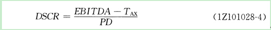 償債備付率是指在技術(shù)方案借款償還期內(nèi),各年可用于還本付息的資金(EBITDA-TAX)與當(dāng)期應(yīng)還本付息金額(PD)的比值。其表達(dá)式為: