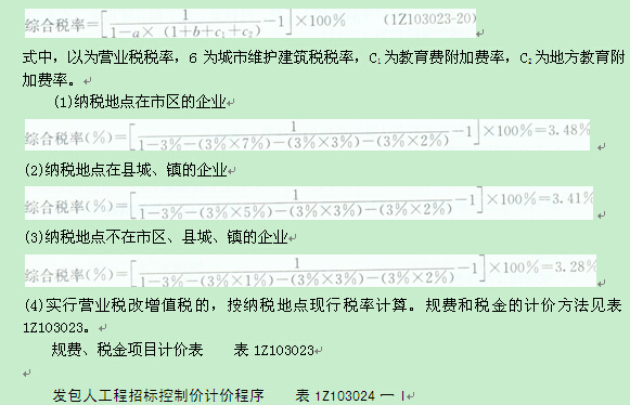 稅金計(jì)算公式:稅金=稅前造價(jià)×綜合稅率(%)(1Z103023-19)