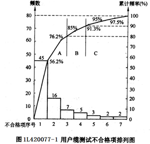 在X市本地網(wǎng)通信線路工程中,某施工處承擔(dān)戶線安裝部分,包括分線設(shè)備下線(稱爬桿線)和用戶室外線兩部分。線纜走向整齊、合理,并于8日30日全部安裝完成,從9月1日開始由技術(shù)人員對(duì)線纜進(jìn)行測(cè)試,在測(cè)試過程中發(fā)現(xiàn)其中存在很多質(zhì)量問題,統(tǒng)計(jì)如表1L420077-1所示: