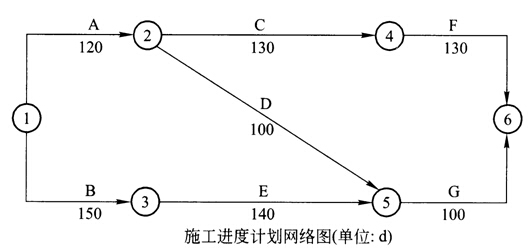 3.本工程進(jìn)度計(jì)劃網(wǎng)絡(luò)圖的關(guān)鍵線路:①→③→⑤→⑥