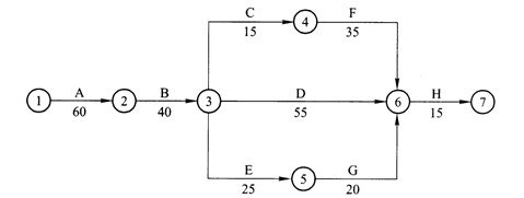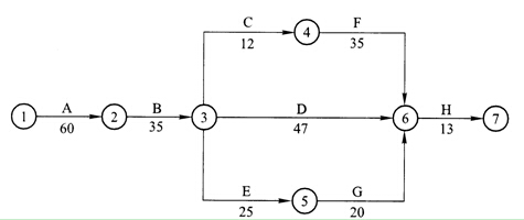調整后進度計劃I酬絡圖的關鍵線路(用工作表示):A→B→D→H和A→ B→C→F→H。