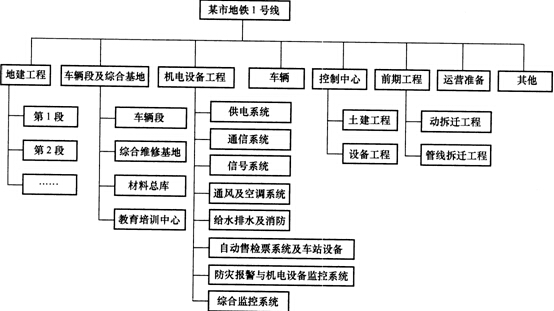 圖1Z201031-5某市地鐵1號線工程的項目結(jié)構(gòu)圖
