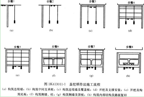 蓋挖順作法的具體施,丁流程見圖1K413011-1 。