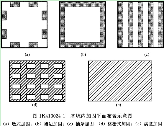 (1)基坑地基按加固部位不同,分為基坑內(nèi)加固和基坑外兩種。
