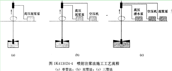 3)三管法:噴射高壓水流、壓縮空氣及水泥漿液等三種介質(zhì)。