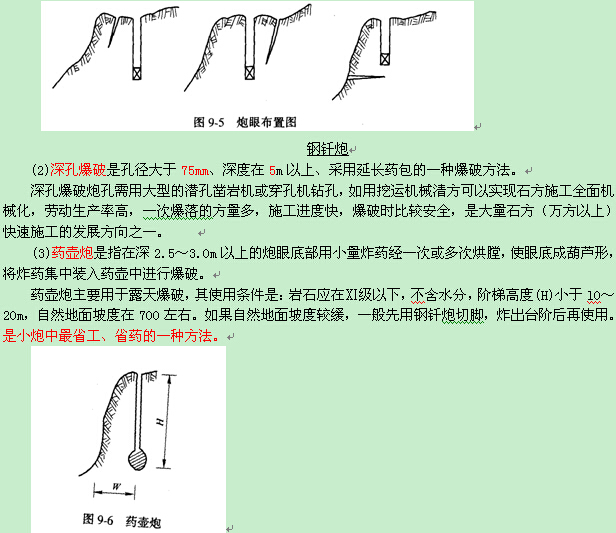 (1)鋼釬炮通常指炮眼直徑和深度分別小于70mm和5m的爆破方法。