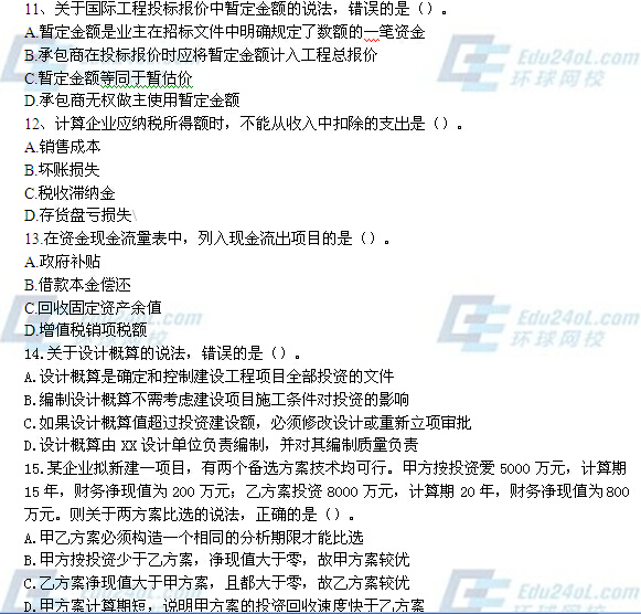 【摘要】一級建造師考試剛剛結(jié)束,各位考生一定非常關(guān)注本次考試的試題和參考答案等信息,環(huán)球網(wǎng)校一級建造師考試頻道為方便各位考生估分,特地為大家及時整理了本次一級建造師考試的真題,并附解析與參考答案,本文為2014年一級建造師《工程經(jīng)濟(jì)》真題(圖片版),希望能夠?qū)Ω魑灰患壗ㄔ鞄熆忌兴鶐椭?。更多?fù)習(xí)報考資料及試題敬請關(guān)注環(huán)球網(wǎng)校一級建造師考試頻道,您可以按【ctrl鍵+D】手動收藏此頁面。