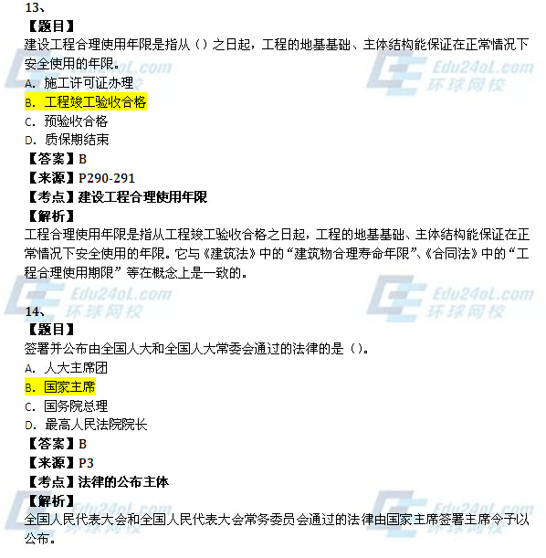 【摘要】一級建造師考試剛剛結(jié)束,各位考生一定非常關(guān)注本次考試的試題和參考答案等信息,環(huán)球網(wǎng)校一級建造師考試頻道為方便各位考生估分,特地為大家及時整理了本次一級建造師考試的真題,并附解析與參考答案,本文為2014年一級建造師《工程法規(guī)》真題解析(11-20),希望能夠?qū)Ω魑灰患壗ㄔ鞄熆忌兴鶐椭?。更多?fù)習(xí)報考資料及試題敬請關(guān)注環(huán)球網(wǎng)校一級建造師考試頻道,您可以按【ctrl鍵+D】手動收藏此頁面。