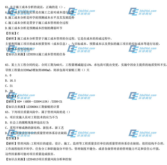 【摘要】一級建造師考試剛剛結(jié)束,各位考生一定非常關(guān)注本次考試的試題和參考答案等信息,環(huán)球網(wǎng)校一級建造師考試頻道為方便各位考生估分,特地為大家及時整理了本次一級建造師考試的真題,并附解析與參考答案,本文為2014年一級建造師《項目管理》真題解析(61-70),希望能夠?qū)Ω魑灰患壗ㄔ鞄熆忌兴鶐椭?。更多?fù)習(xí)報考資料及試題敬請關(guān)注環(huán)球網(wǎng)校一級建造師考試頻道,您可以按【ctrl鍵+D】手動收藏此頁面。