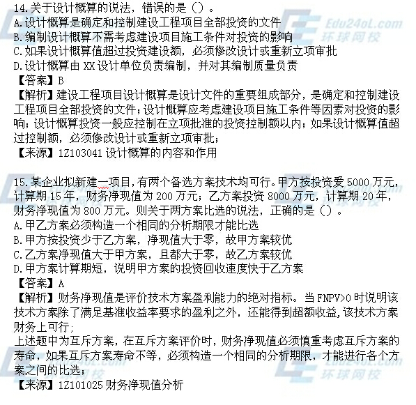 2014年一級建造師《工程經(jīng)濟》真題解析(1-20)