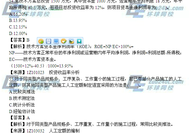 【摘要】一級建造師考試剛剛結束,各位考生一定非常關注本次考試的試題和參考答案等信息,環(huán)球網(wǎng)校一級建造師考試頻道為方便各位考生估分,特地為大家及時整理了本次一級建造師考試的真題,并附解析與參考答案,本文為2014年一級建造師《工程經(jīng)濟》真題解析(41-60),希望能夠?qū)Ω魑灰患壗ㄔ鞄熆忌兴鶐椭?。更多復習報考資料及試題敬請關注環(huán)球網(wǎng)校一級建造師考試頻道,您可以按【ctrl鍵+D】手動收藏此頁面。