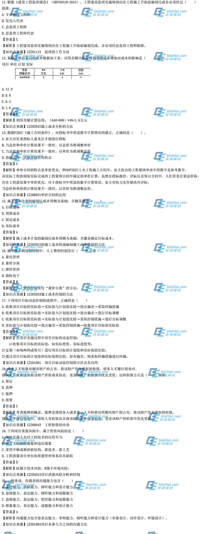 【摘要】一級(jí)建造師考試剛剛結(jié)束,各位考生一定非常關(guān)注本次考試的試題和參考答案等信息,環(huán)球網(wǎng)校一級(jí)建造師考試頻道為方便各位考生,特地為大家及時(shí)整理了本次一級(jí)建造師考試的真題,并附解析與參考答案,本文為2014年一級(jí)建造師《項(xiàng)目管理》真題解析(11-20),希望能夠?qū)Ω魑灰患?jí)建造師考生有所幫助。更多復(fù)習(xí)資料及試題敬請(qǐng)關(guān)注環(huán)球網(wǎng)校一級(jí)建造師考試頻道,您可以按【ctrl鍵+D】手動(dòng)收藏此頁(yè)面。