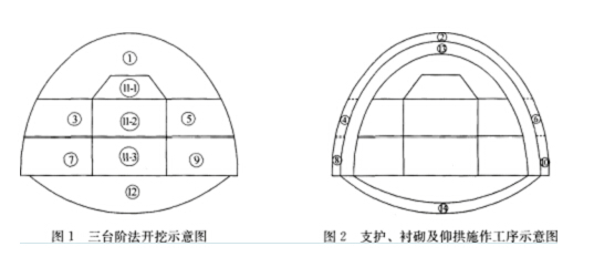 針對(duì)開(kāi)挖時(shí)右側(cè)圍巖相對(duì)左側(cè)圍巖較弱的特點(diǎn),施工單位按照“強(qiáng)支護(hù)、勤量測(cè)、緊襯砌”的原則組織上圖各部位工序施工。隧道防水和排水應(yīng)按照防、截、堵相結(jié)合的原則進(jìn)行綜合設(shè)計(jì),使洞內(nèi)、洞口與洞外構(gòu)成完整的防水、排水系統(tǒng)。