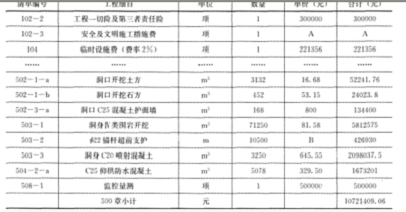施工結(jié)束時(shí),實(shí)際完成的“503―2”工程量為12500m,“503―3”工程量為3365m3,并增加了“洞口C25噴射混凝土”124.6m3。