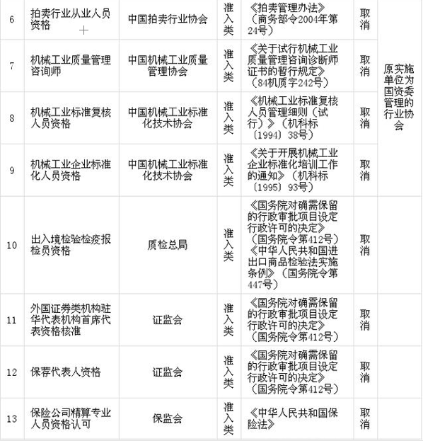 金融理財(cái)師,中國(guó)職業(yè)經(jīng)理人,出入境檢驗(yàn)檢疫報(bào)檢員資格、拍賣行業(yè)從業(yè)人員資格、理貨人員從業(yè)資格……近日,國(guó)務(wù)院決定取消多項(xiàng)行政審批和許可,其中有67項(xiàng)職業(yè)資格許可和認(rèn)定事項(xiàng)被取消。