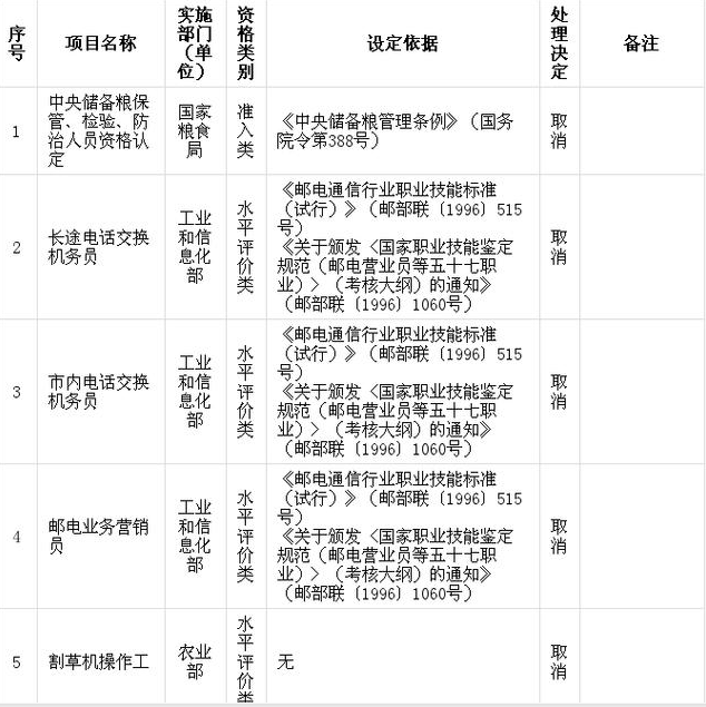 看看哪些證書被取消了? 67項(xiàng)職業(yè)資格認(rèn)證具體如下: