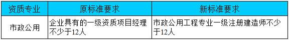 市政總承包一級(jí)資質(zhì)對(duì)建造師要求新舊標(biāo)準(zhǔn)對(duì)照